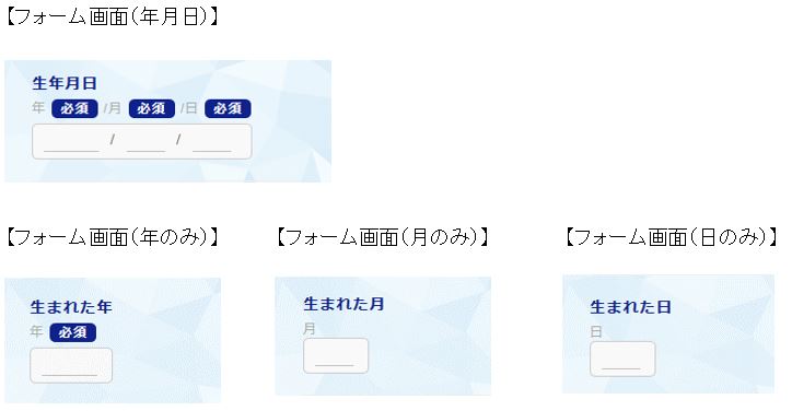※入力条件を、「年」のみ「月」のみ「日」のみなどに設定することもできます。