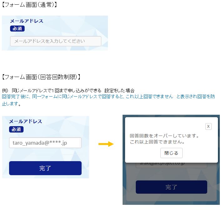 ※同じメールアドレスからの回答を1回までなど回答できる回数を制限をすることもできます。