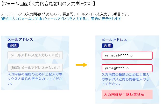 ※入力間違いを防止するため、確認用の入力項目を設定することも可能です。