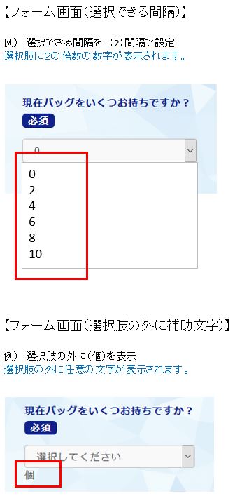 ※選択できる数最小値〜最大値を設定することができます。