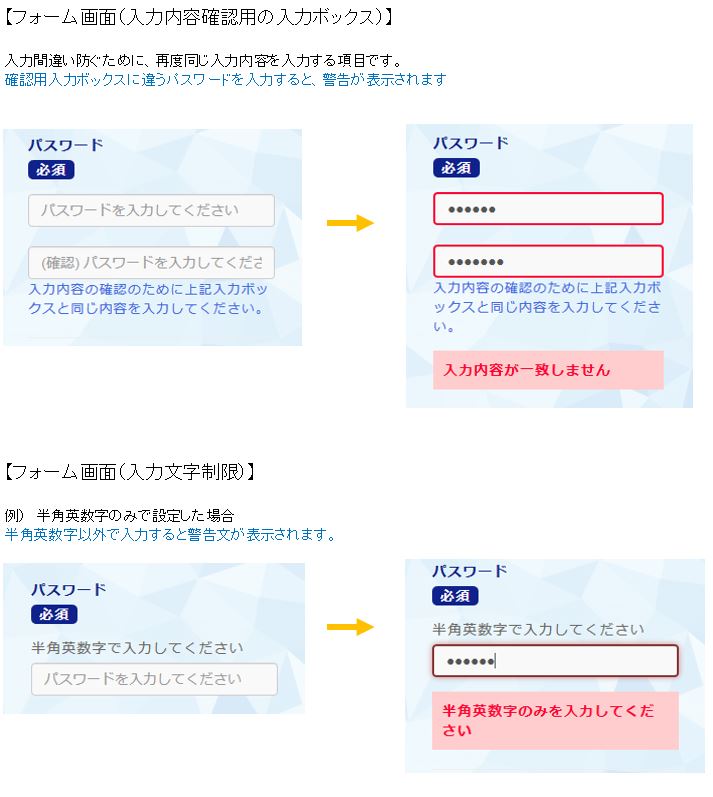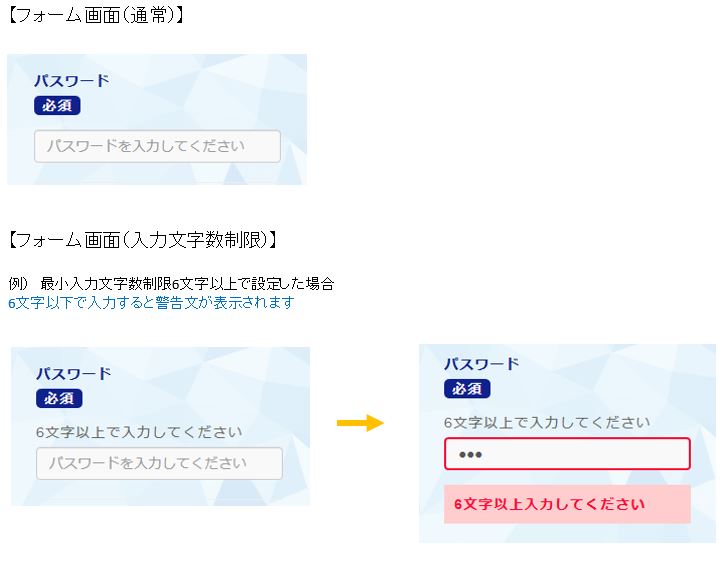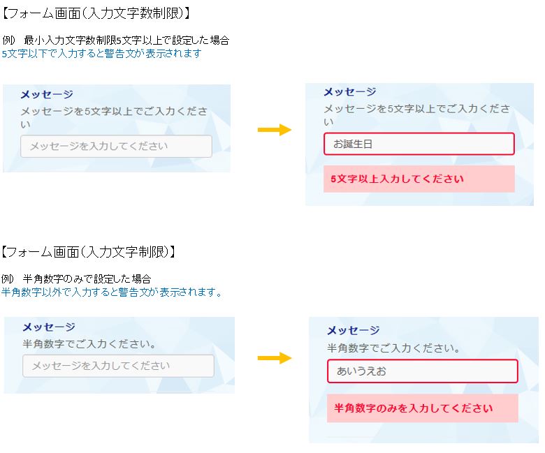 ※半角数字のみ、半角英数字にのみ、入力可能といった入力制限も設定できます。