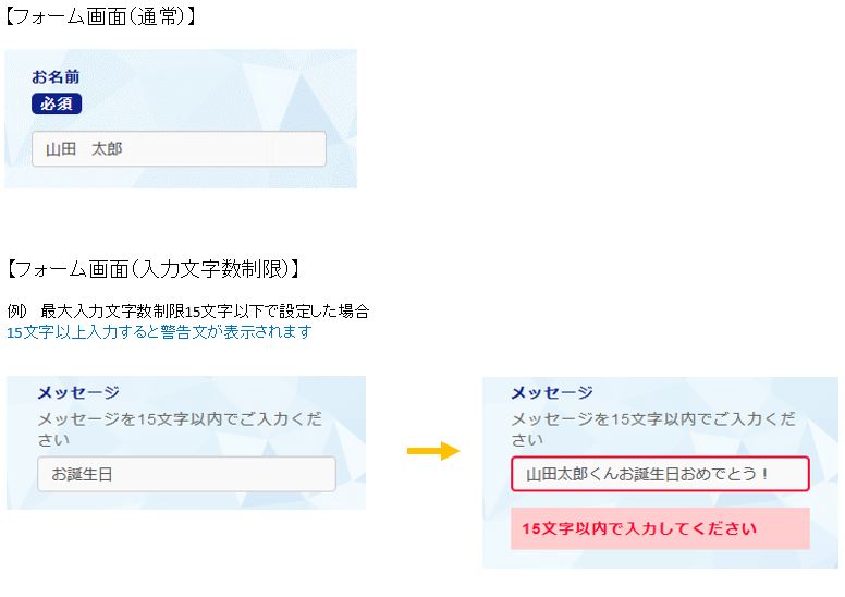 ※入力文字数に制限を設定することも可能です。